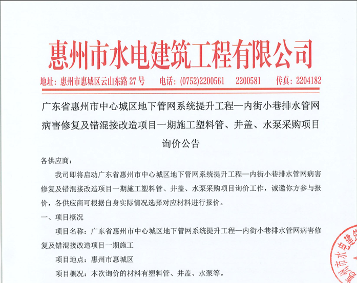 惠州市水電建筑工程有限公司成立于一九六四年四月,隸屬惠州市水務(wù)集團(tuán)有限公司,是一家國(guó)有綜合性施工企業(yè),主營(yíng)水利水電工程、房屋建筑、市政工程等施工業(yè)務(wù)。公司擁有水利水電工程施工總承包一級(jí)、建筑工程施工總承包一級(jí)、市政公用工程施工總承包一級(jí)、公路工程施工總承包三級(jí),公路路基、路面及建筑裝修裝飾專(zhuān)業(yè)承包二級(jí),環(huán)保工程、機(jī)電安裝、河湖整治、輸變電工程專(zhuān)業(yè)承包三級(jí)等經(jīng)營(yíng)資質(zhì)……
